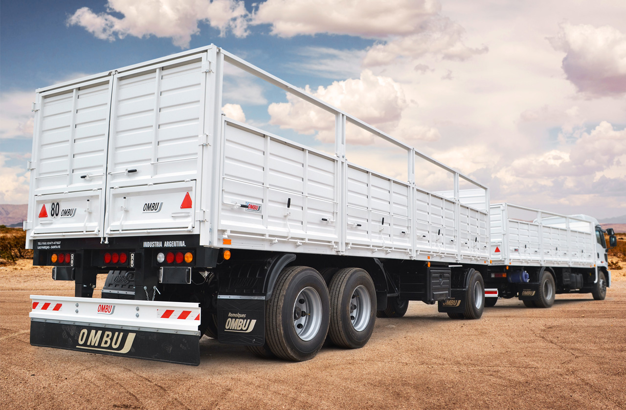 Cantidad de ejes: 3 - Tara: 6100 kg. (en orden de marcha - modelo 9,30m) Longitudes disponibles: 8,85 o 9,30m Ancho Exterior: 2,60m - Chasis: viga doble T, soldada eléctricamente con sistema MIG – MAG. Carrozado: compuesto por chapas plegadas y estampadas en espesores 1/8” (3,17 mm) y 3/16” (4,76mm), que le brindan gran resistencia y optima tara. Puertas laterales: poseen un metro de altura y dos posibilidades de apertura. Apertura pendular desde la parte superior (descarga a granel) y apertura volcable desde la parte inferior (carga y descarga de pallets) Puerta Trasera: posee 270° de apertura con troneras inferiores para descarga de cereal. Altura de Cabezales: delantero y trasero de 1,80m. Suspension: elásticos reforzados de 12 hojas para transporte de cargas de gran peso. Espesor de la hoja ½” (12,7 mm) de ancho y el paquete de 3” (76,2 mm) Ejes: tubulares, con punta de acero SAE 1541, soldadas eléctricamente y tratadas térmicamente. Lubricación opcional: Grasa o aceite.