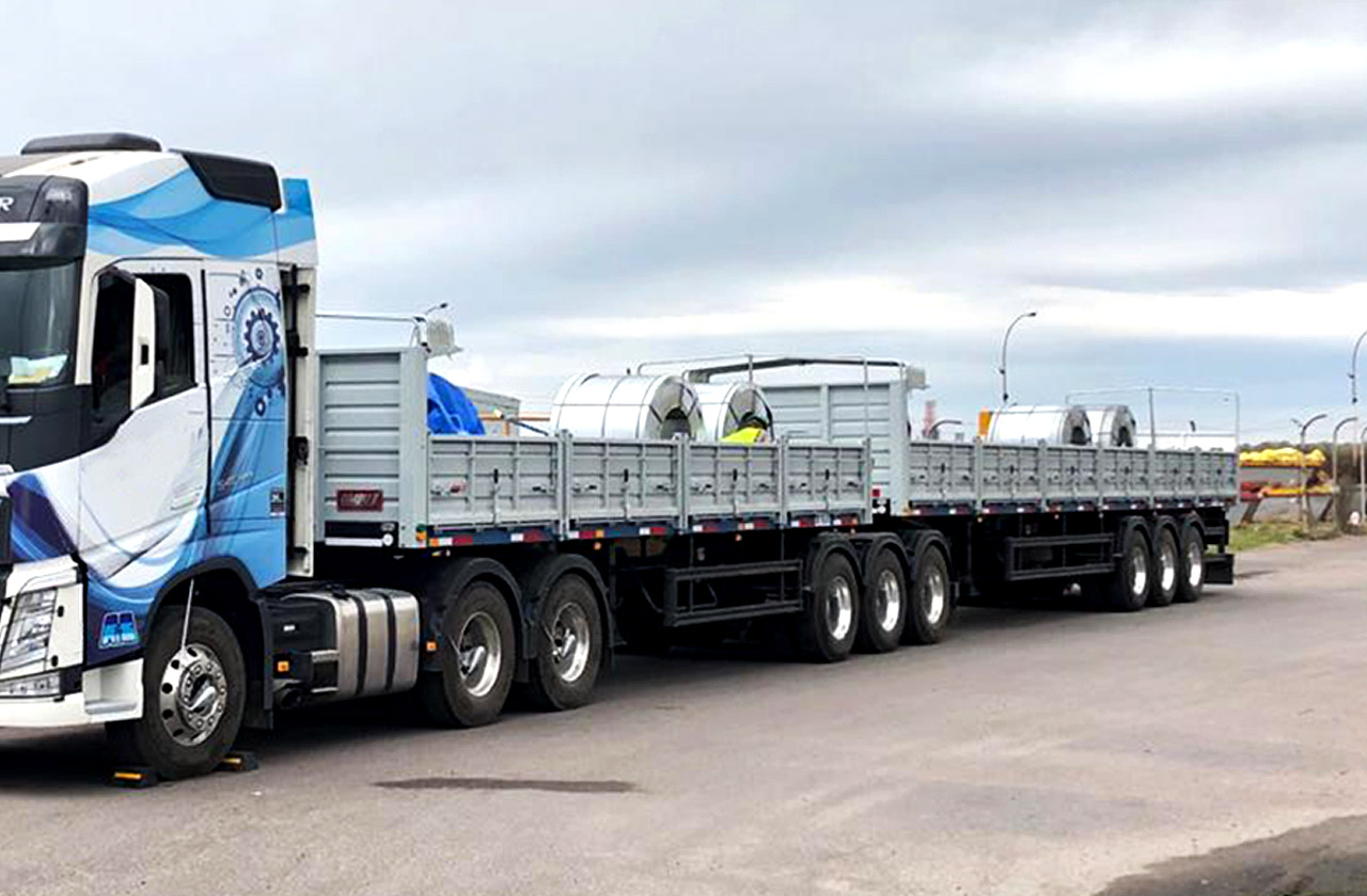 Bogie trasero: Construido en chapa de acero microaleado, espesor 6,35mm. Todo soldado de manera tal de conferirle libertad torsional a toda la estructura del chasis.