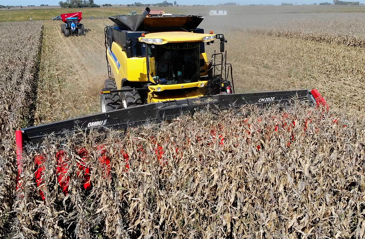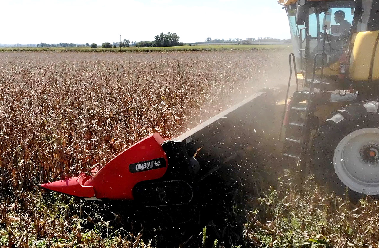 El Cabezal Maicero OMBU CM 2020 es un equipo adaptable, robusto y versátil, diseñado para trabajar en distintas configuraciones de surcos y condiciones de cultivo.