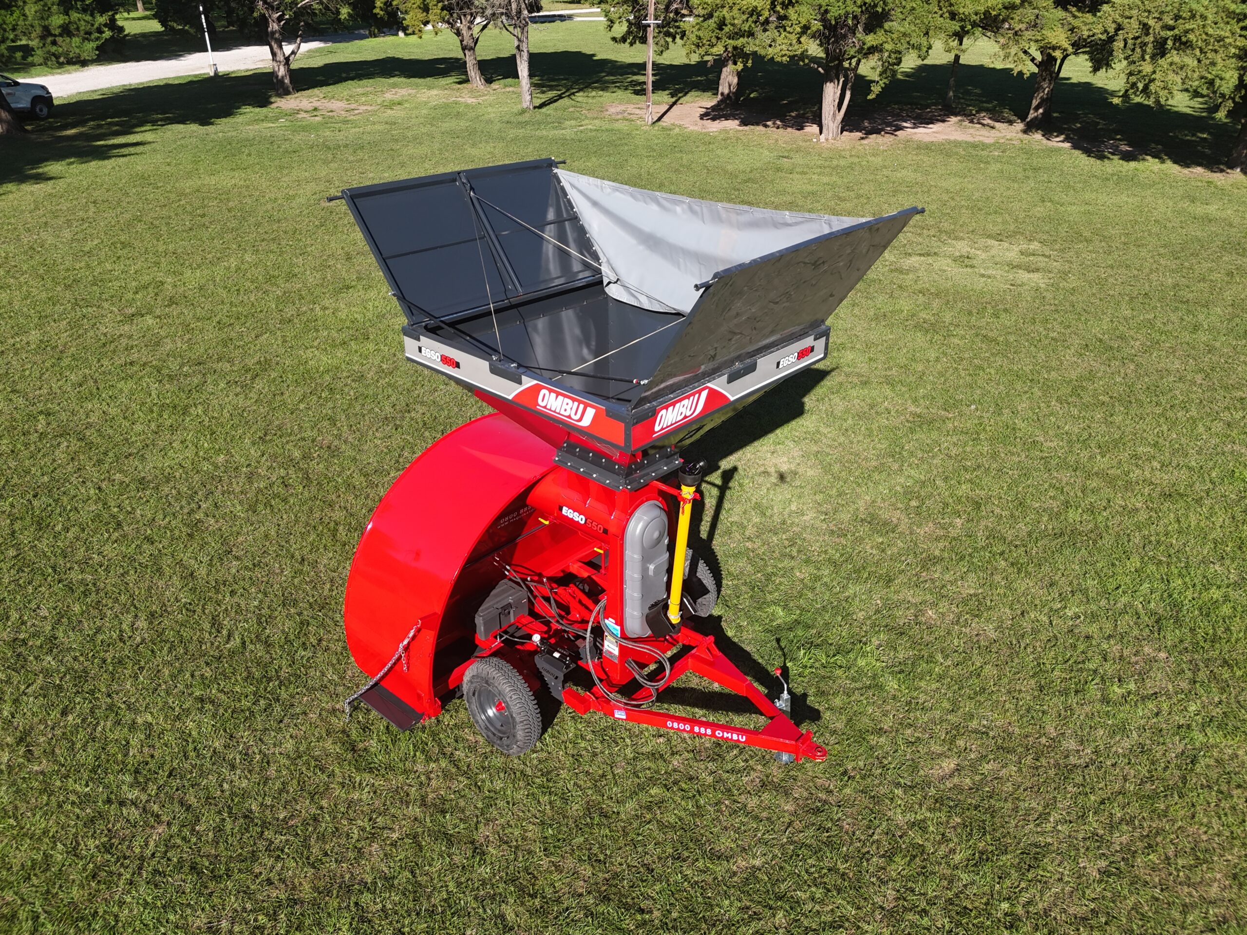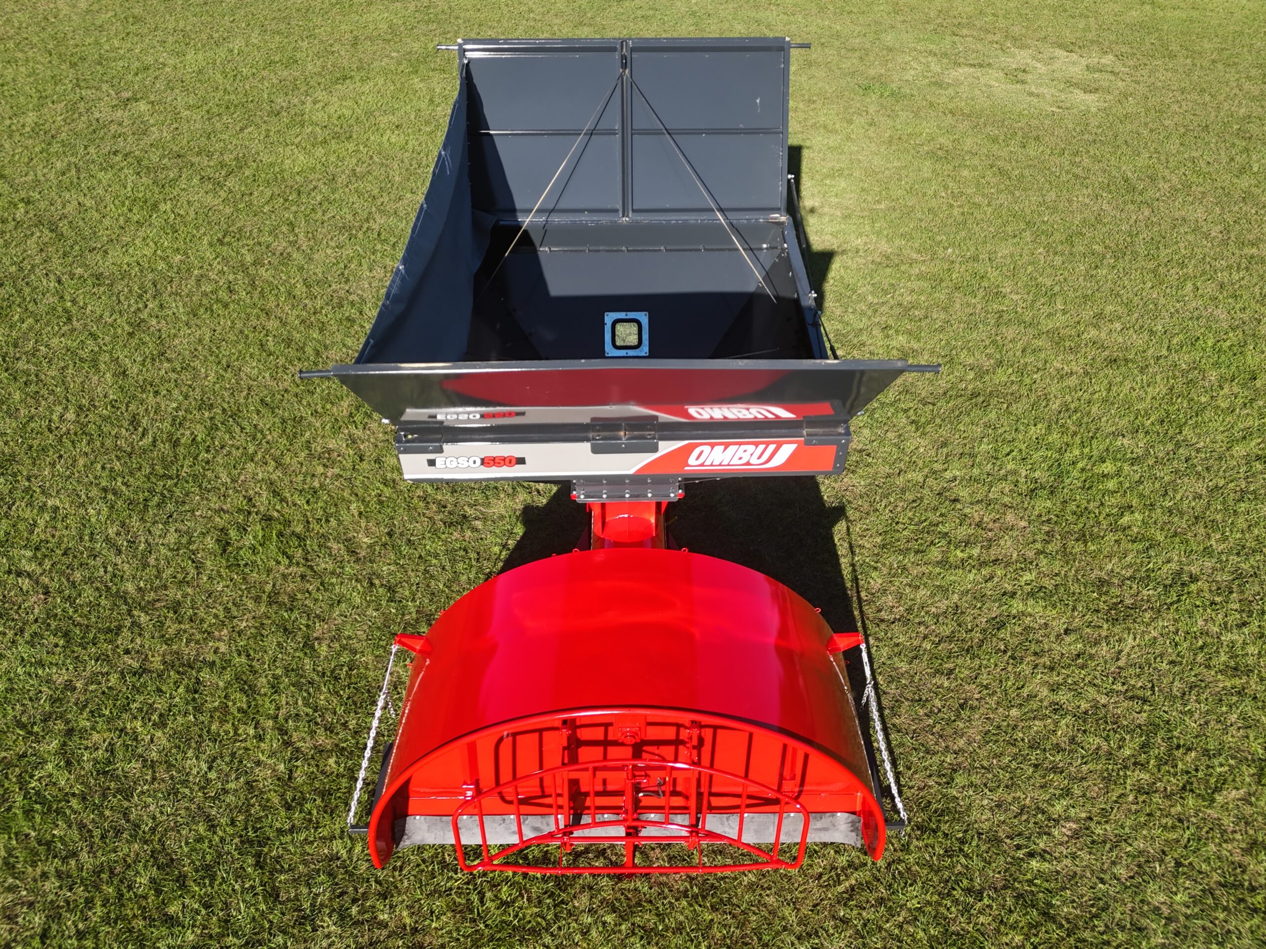Tolva de gran capacidad con sistema de puertas que permiten avanzar a la máquina 3m. sin mover la tolva autodescargable, evitando daños en el embrague del tractor.