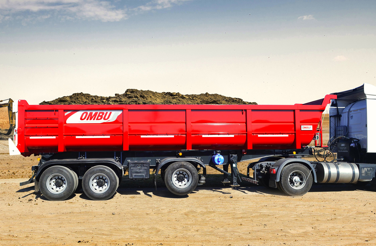 Capacidad: 27m3. Tara en orden de marcha: 8500 Kg. Chasis: Recto construido en acero micro-aleado MLC 420. Manotas de acero estampado. Guardabarros plásticos. Caja: En acero micro-aleado MLC 420. Ángulo de vuelco: 45°. Cilindro hidráulico de 8" x 5 etapas 5600 mm de carrera. Válvula de fin de carrera y limitadora de presión. Puerta trasera de triple apertura. Basculante y lateral con boquilla reguladora. Tijera estabilizadora que garantiza rigidez lateral cuando la caja opera en altura. Rodado: llantas disco 9.00 x 22.5 sin cámara. Frenos: De 8" Meritor sistemas Q MAX. Levas con bujes lubricados. SPRING BRAKE en donde lo requiere. Ejes: tubulares de acero micro-aleado. Combinación 2+1, tandem de dos o tres ejes. Dos ejes a ballesta más uno auto-direccional con suspensión neumática y levanta-ejes. Lubricación a grasa. Frenos 8". Largo de eje: 71". Opcional: Cobertura de Lona y sobre-barandas para alcanzar 32m3: Depósito de aceite con 180 L. Conjunto de toma de fuerza y bomba para acoplar al camión. Pintura poliuretanica de 90 micrones de espesor. Sistema lumínico de led y lámparas. El equipamiento cumple con la Ley de tránsito y Seguridad Vial N° 24.449.