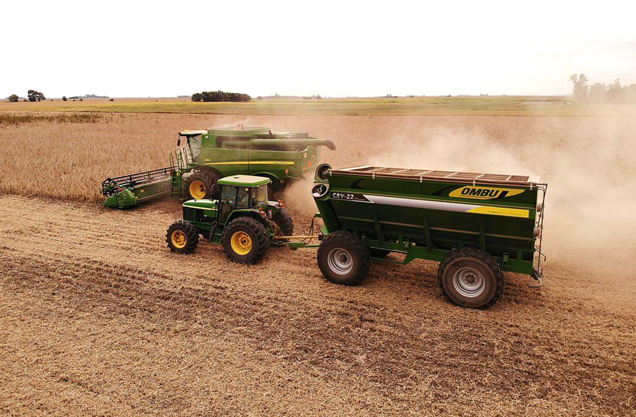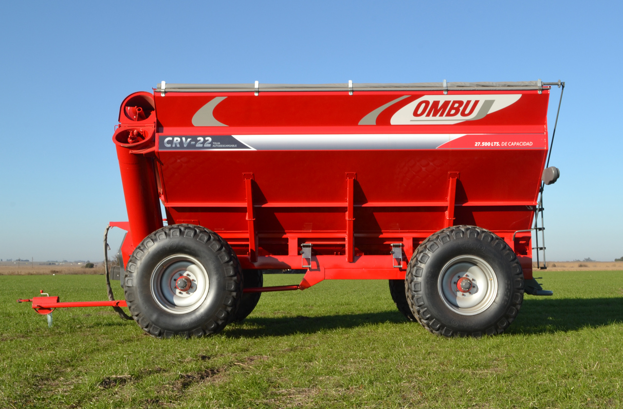Volumen de carga: 27.500Lts. Capacidad de carga en trigo: 22 Toneladas. Velocidad descarga (Litros): 9.166 Lts./min. Velocidad descarga (Trigo): 7,33 tn/min. Velocidad descarga total: 3 min. Potencia mínima de tractor: 118 hp / 120 cv. Tubo de descarga con camisa cambiable de 480 mm de diámetro. Sistema de apertura de fondo volcable rebatible de 100% a 90º con accionamiento desde el exterior y traba automática al cerrar. Chasis: Estructura tubular de acero microaleado. Carrocería con caída de mayor a menor hacia el tubo de descarga de la cosechadora. Marcador de apertura de guillotina. Sinfín tubo descarga: Caja a engranajes, en baño de aceite. Sinfín fondo carrocería: Cadena 1" (ASA 80 - 2 H). Ejes de Transporte con puntas cambiables. Neumáticos: Estándar: 23.1 x 30 (Cant. 4) Opcional: 24.5 x 32 (Cant. 4) Puerta descarga rápida inferior. Puerta descarga rápida delantera con boquilla para embolsar. Caja de herramientas. Tanque de agua con depósito para jabón. Luces tipo Leds. Cobertura de lona con accionamiento desde el piso. Opcionales: Balanza electrónica y neumáticos.